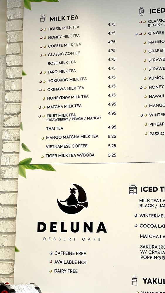 Deluna Dessert Cafe is particularly renowned for its diverse beverage selection. From classic iced teas to unique blended drinks, there's something for everyone. Highlights include: